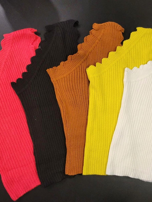 Turtle Neck Rib Knit Short Sleeve Shirt