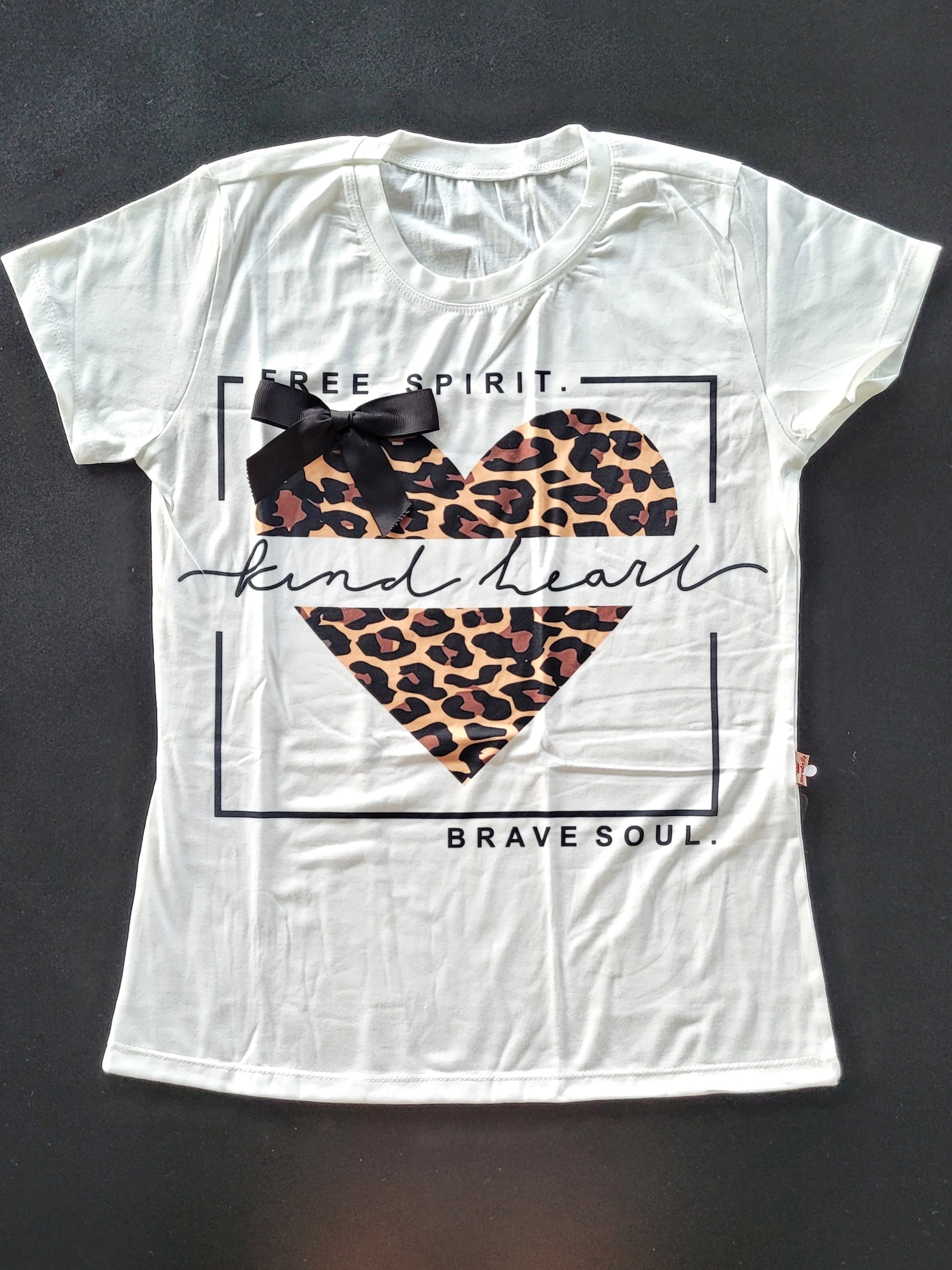 Kind Heart Animal Print T-Shirt with Bow
