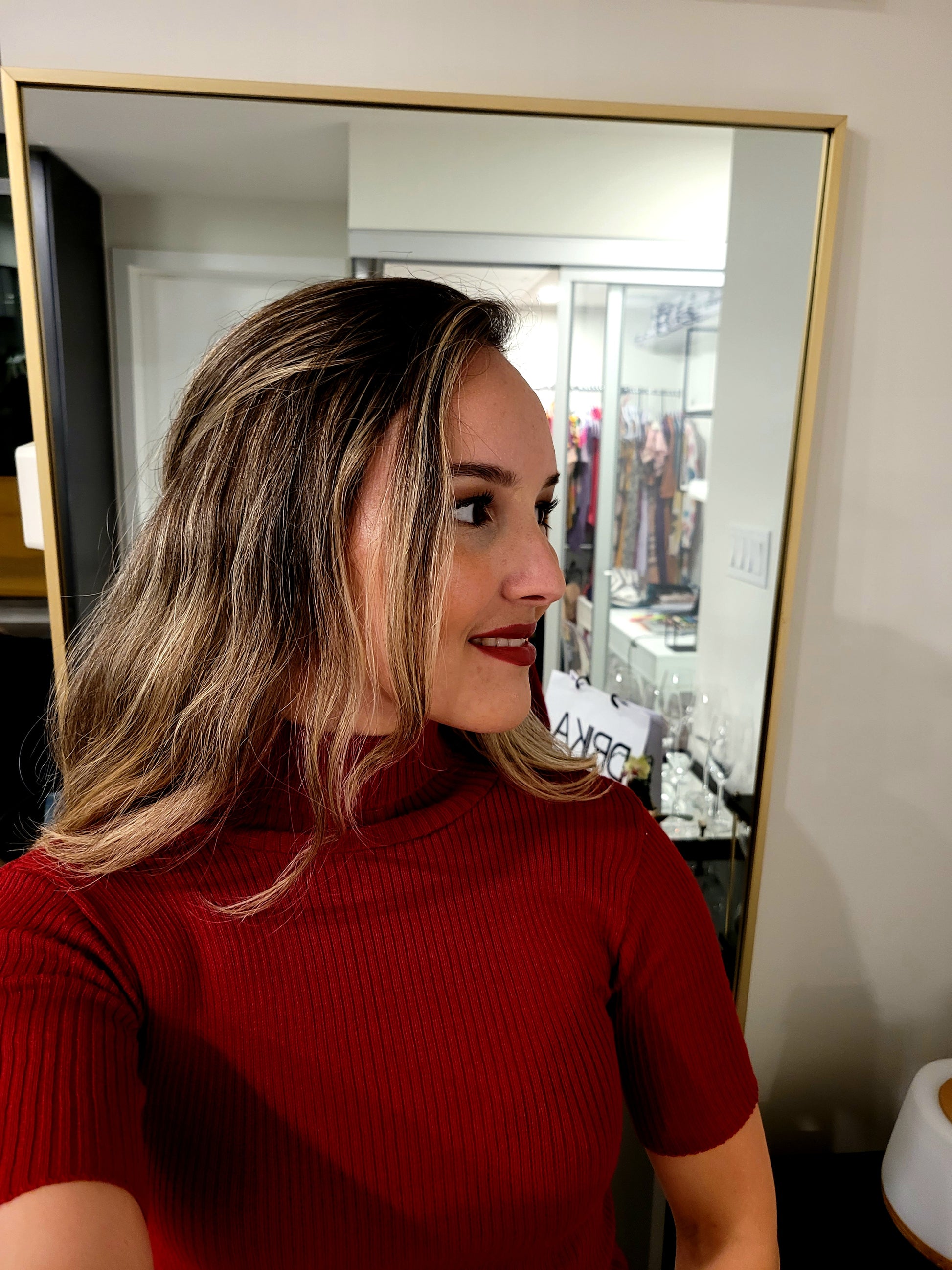 Turtle Neck Rib Knit Short Sleeve Shirt